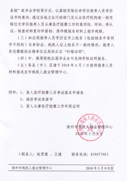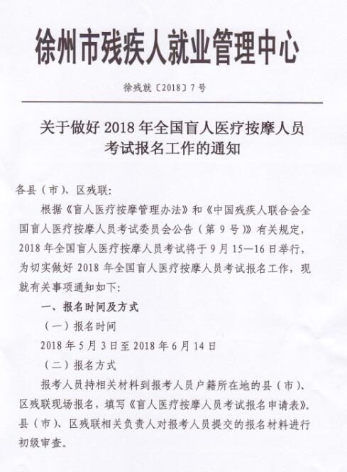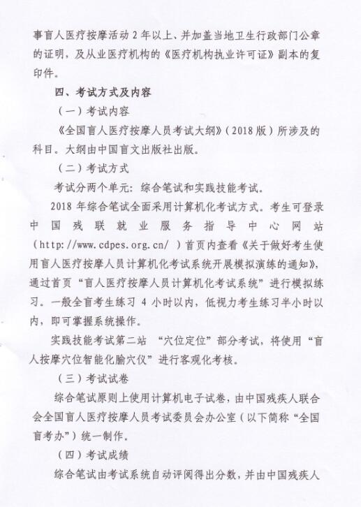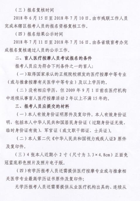 | 关于做好2018年全国盲人医疗按摩人员考试报名工作的通知 | ||